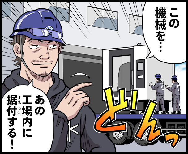 久門機設では、重量機械設備の搬入・据付から運搬を行っています!