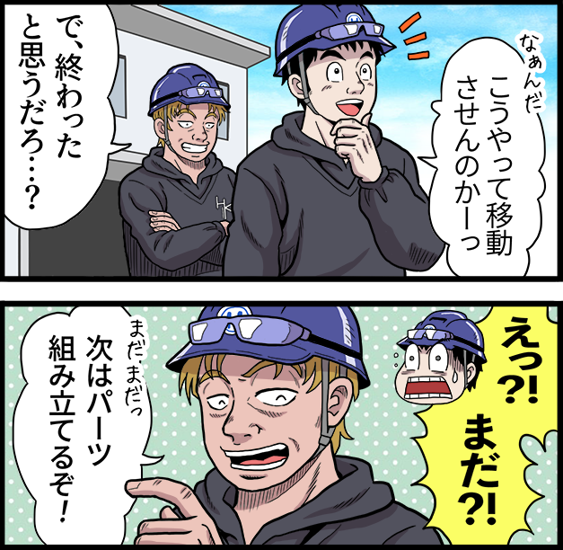 分解・運搬・組立チームの連携プレー -
